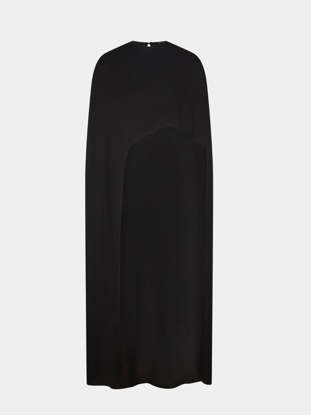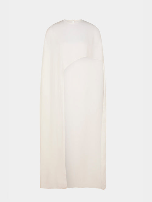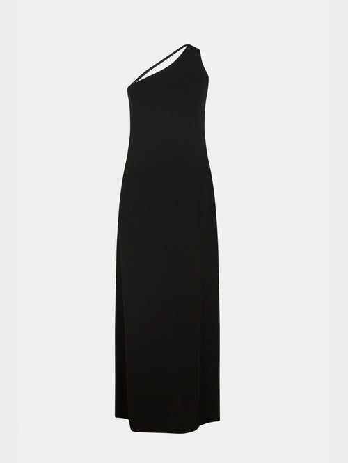 The Alaia Draped Overlay Gown brings a sense of quiet drama to evening dressing. Cut to a fluid, floor-length silhouette, it features an elegant shoulder drape that cascades seamlessly to the hem. The clean high neckline and minimal lines evoke a modern, sculptural simplicity.