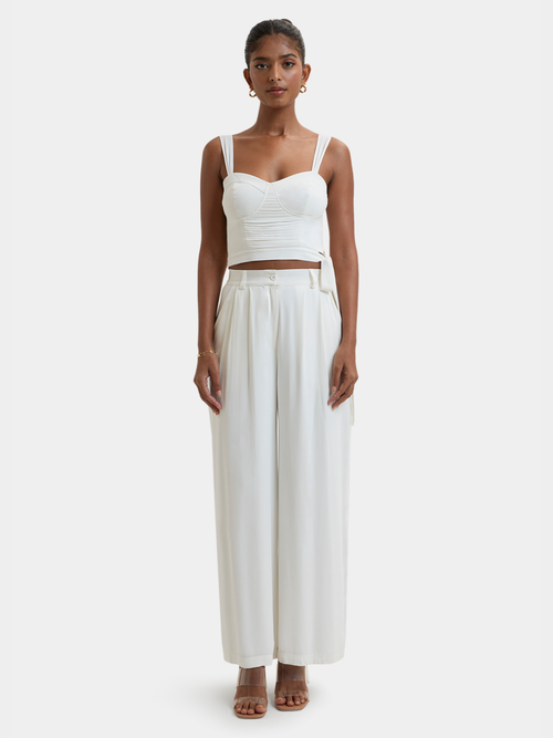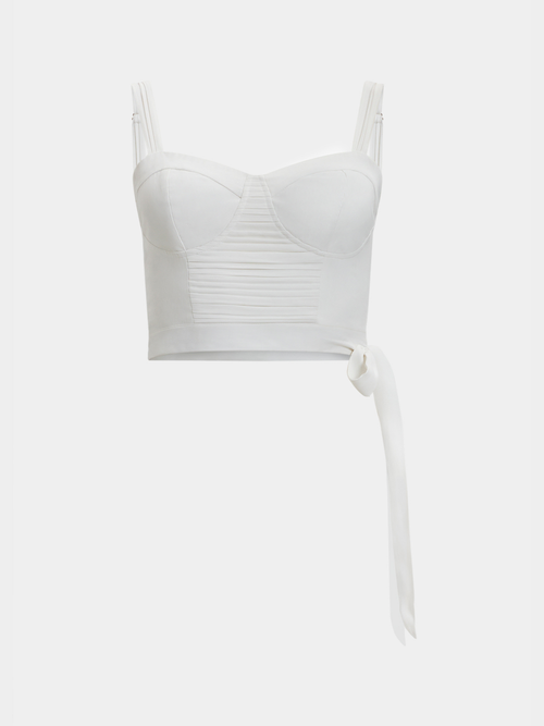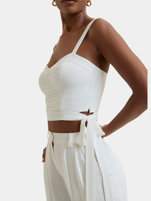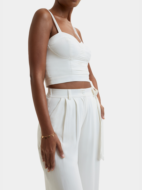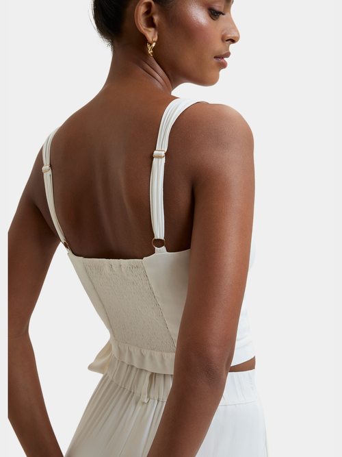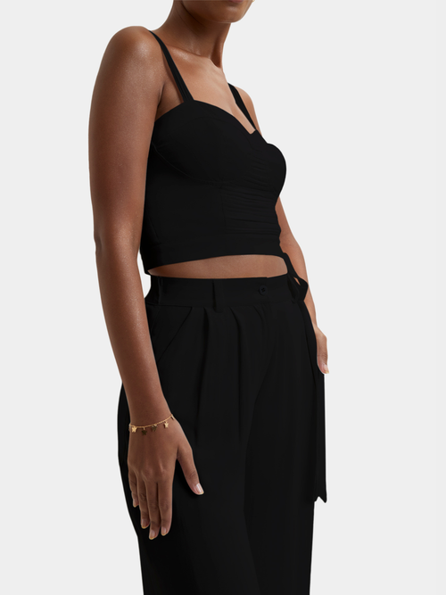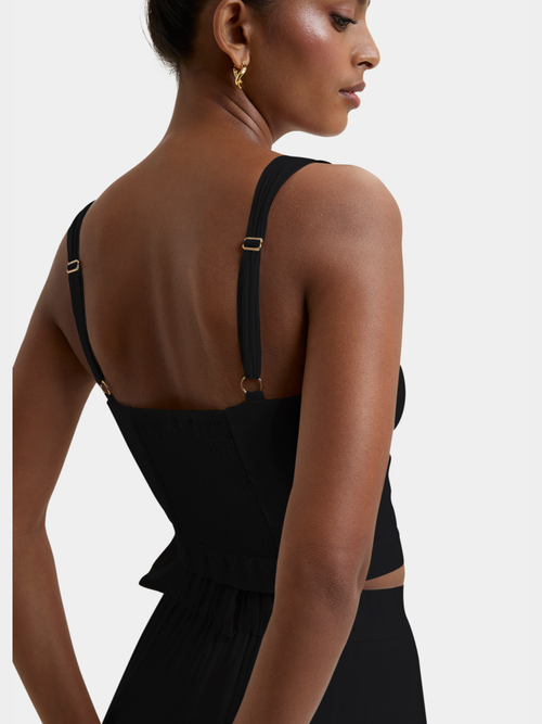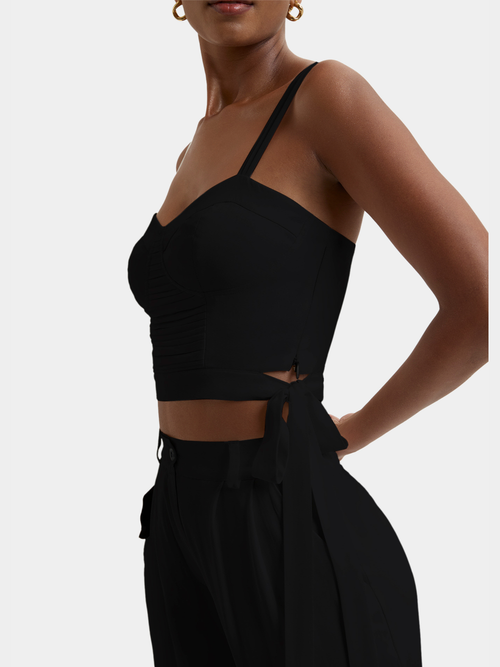 The Kyoto pleated crop top offers a flattering, form-fitting silhouette. Featuring a sweetheart neckline and intricate pleated detailing, complemented by a smocked back for enhanced comfort and added stretch