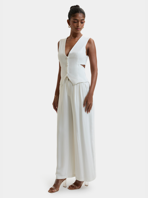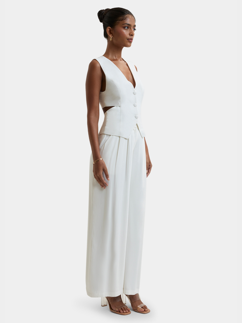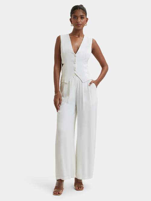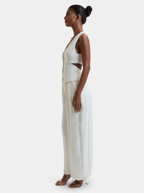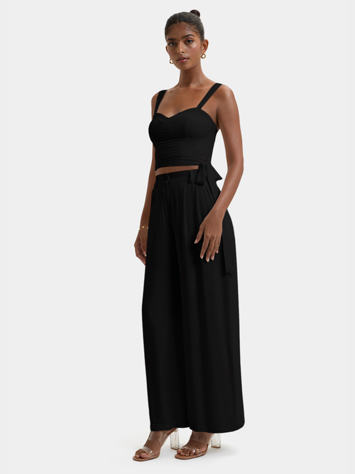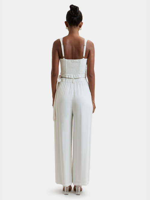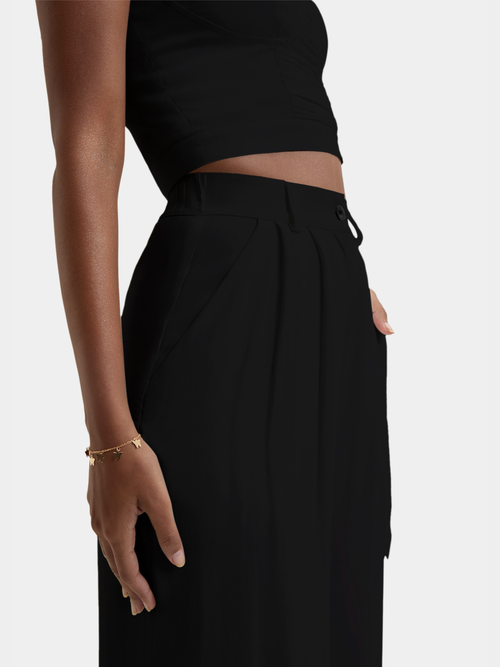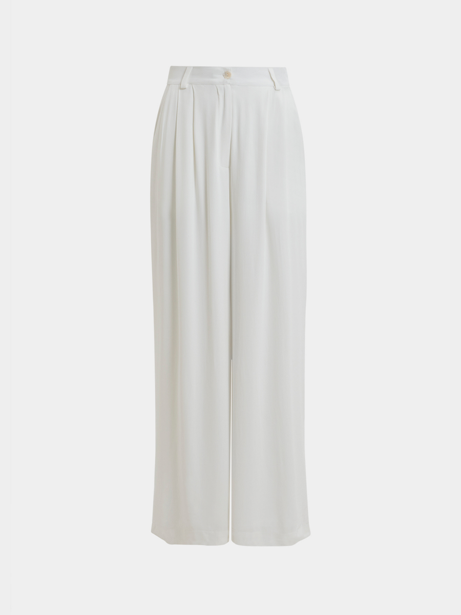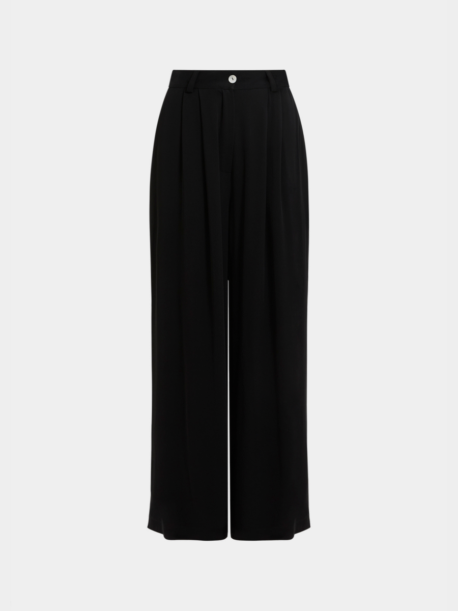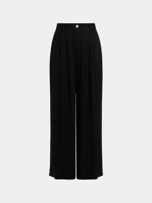 The Kyoto pleated pants feature a mid-rise waistline and a flattering wide-leg design, offering both style and comfort. Pleating details and side seam pockets to enhance functionality. These elements combine to create an elevated and polished look, making the pants a versatile addition to any wardrobe