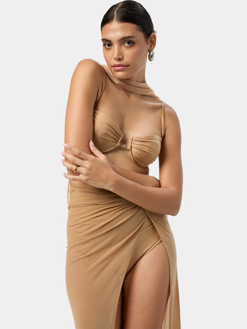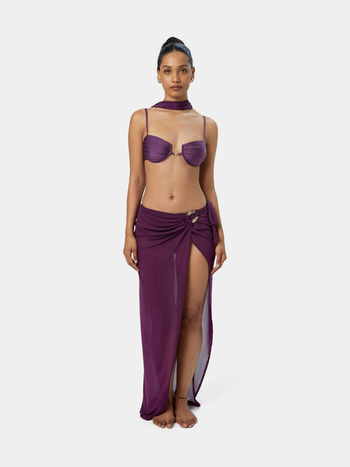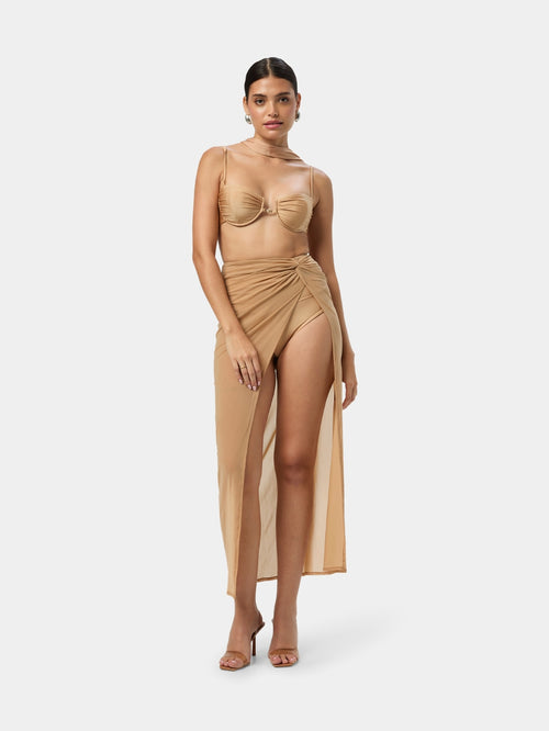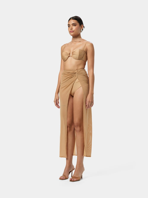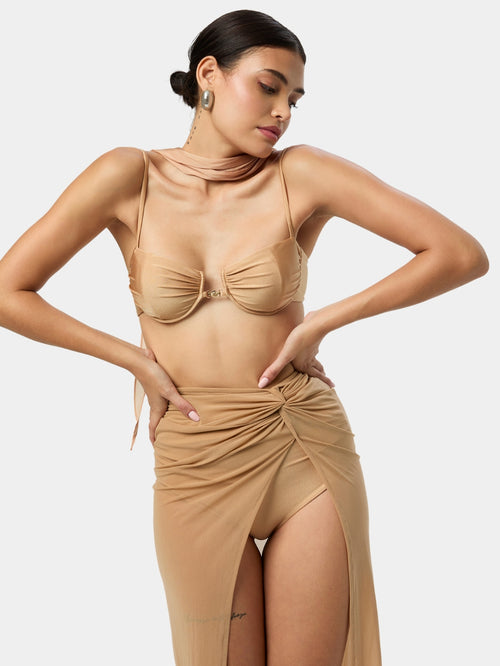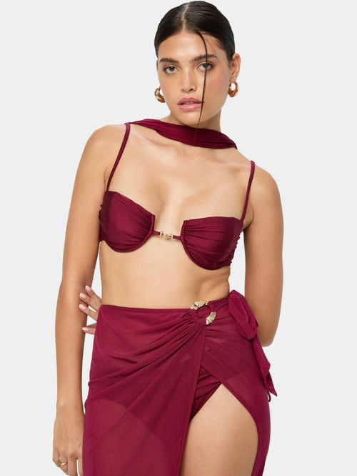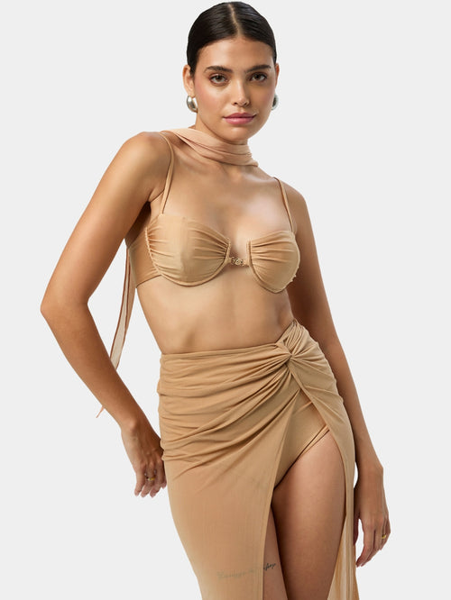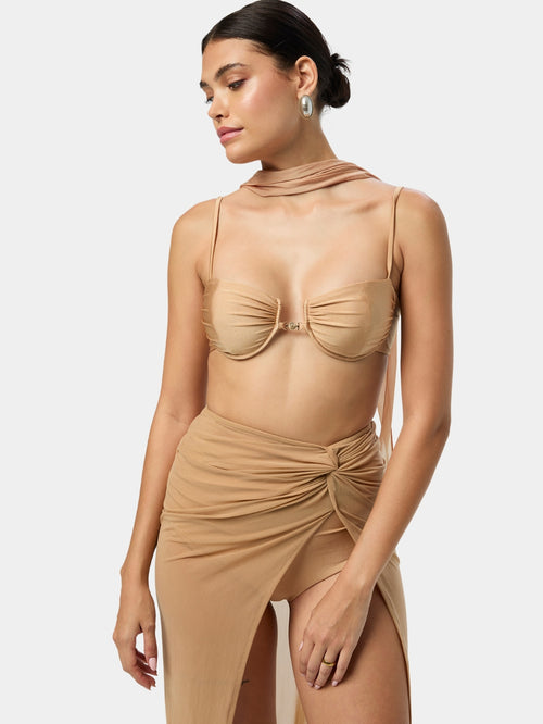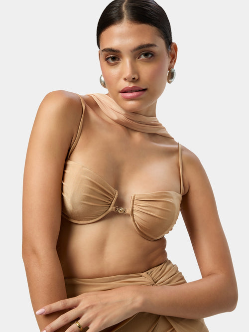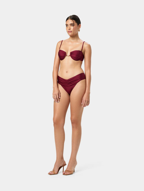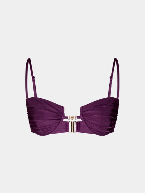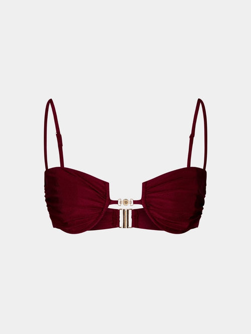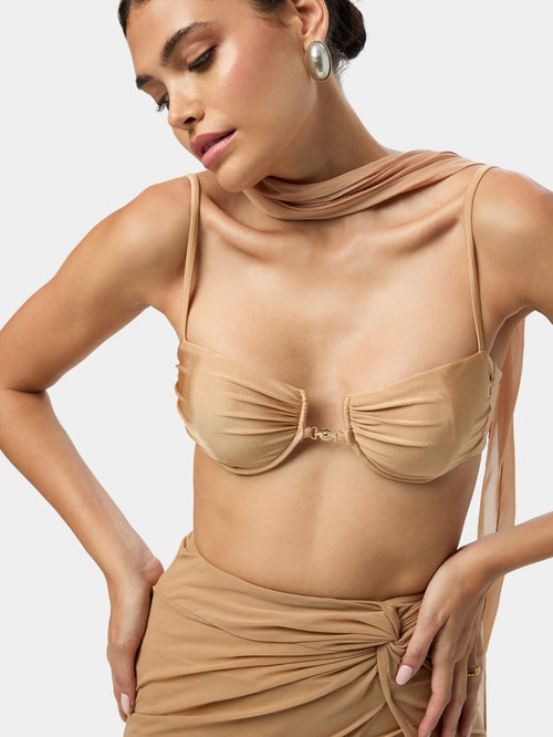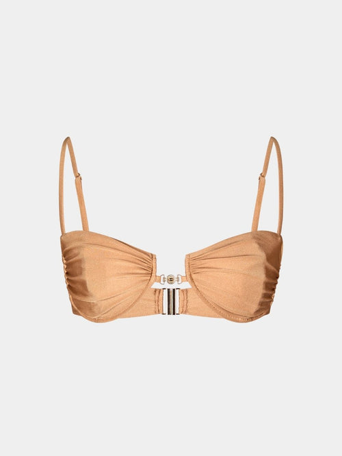 Perfect for sun-drenched escapes, twilight swims or a glamorous evening out. The Riviera balconette bikini top features underwired cups with soft gathering, offering structured support and a naturally lifted shape. Wide-set straps flatter the neckline, while the signature gold-tone center hardware adds a refined touch.