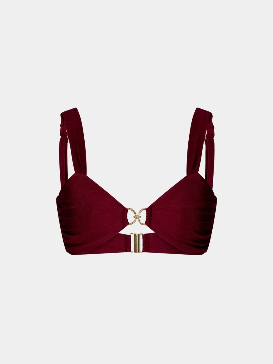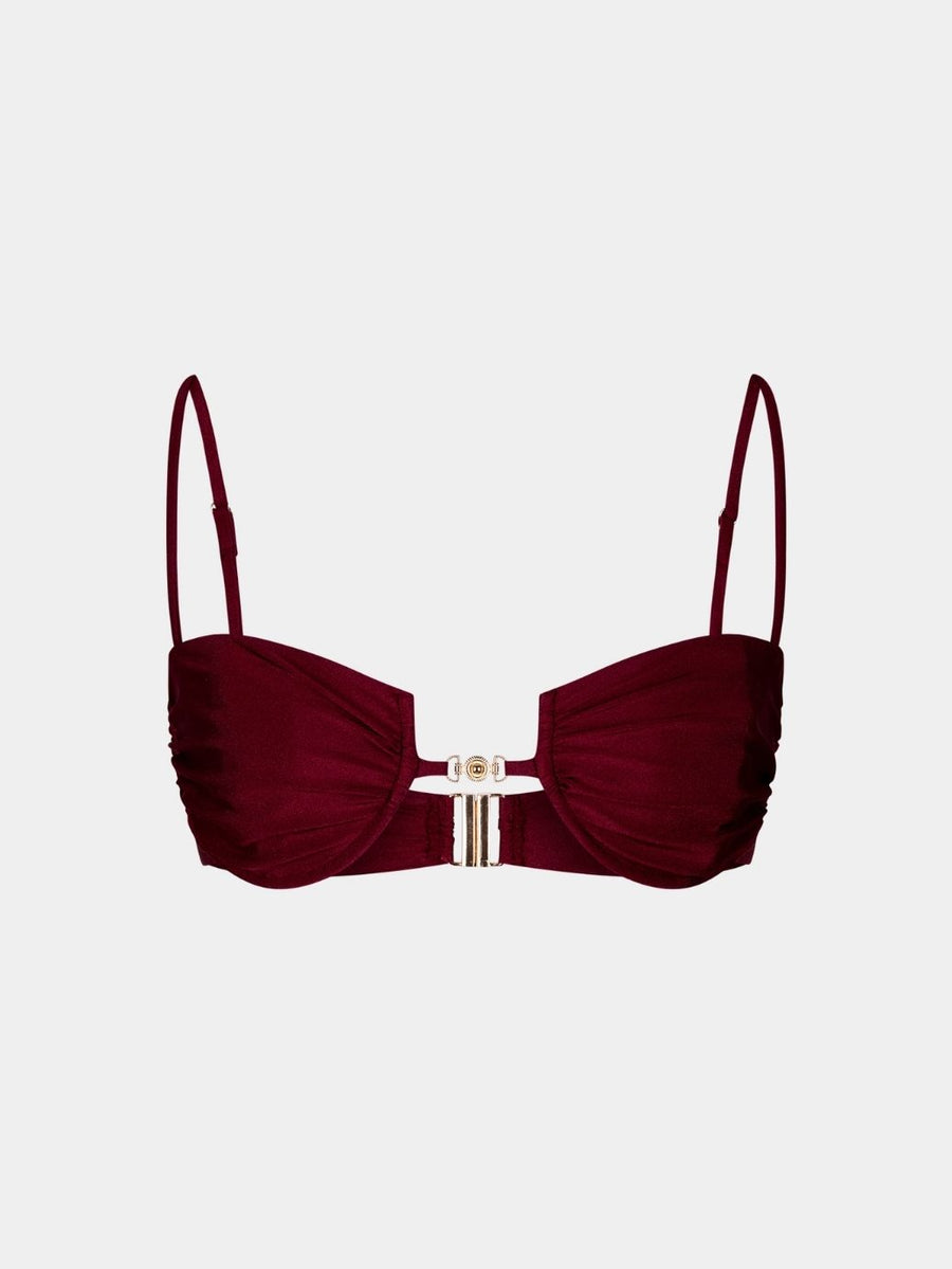 Perfect for sun-drenched escapes, twilight swims or a glamorous evening out. The Riviera balconette bikini top features underwired cups with soft gathering, offering structured support and a naturally lifted shape. Wide-set straps flatter the neckline, while the signature gold-tone center hardware adds a refined touch.